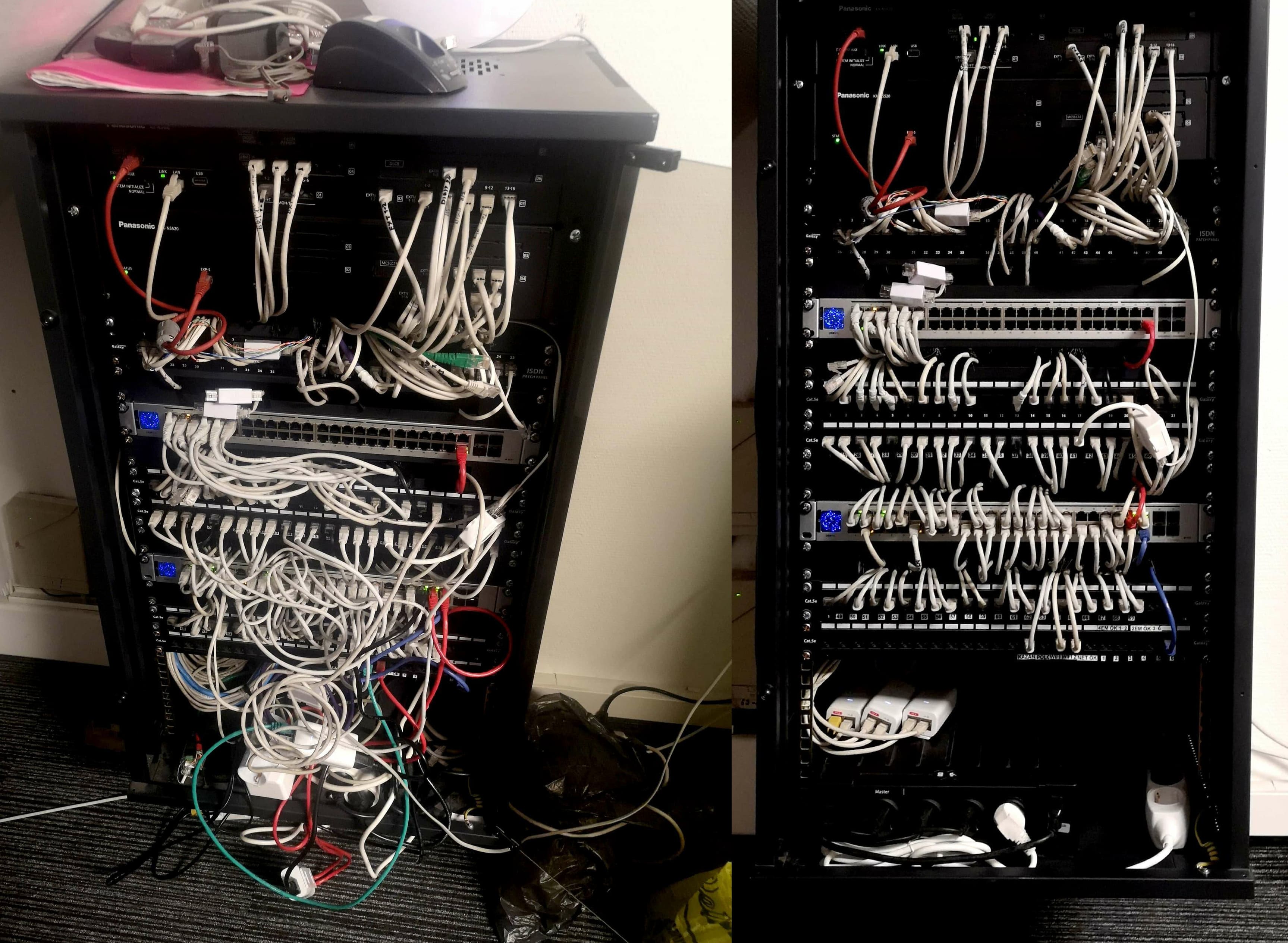 - Hálózati eszközök és kábeleik kulturált elrendezése (rackszekrény hiányában)